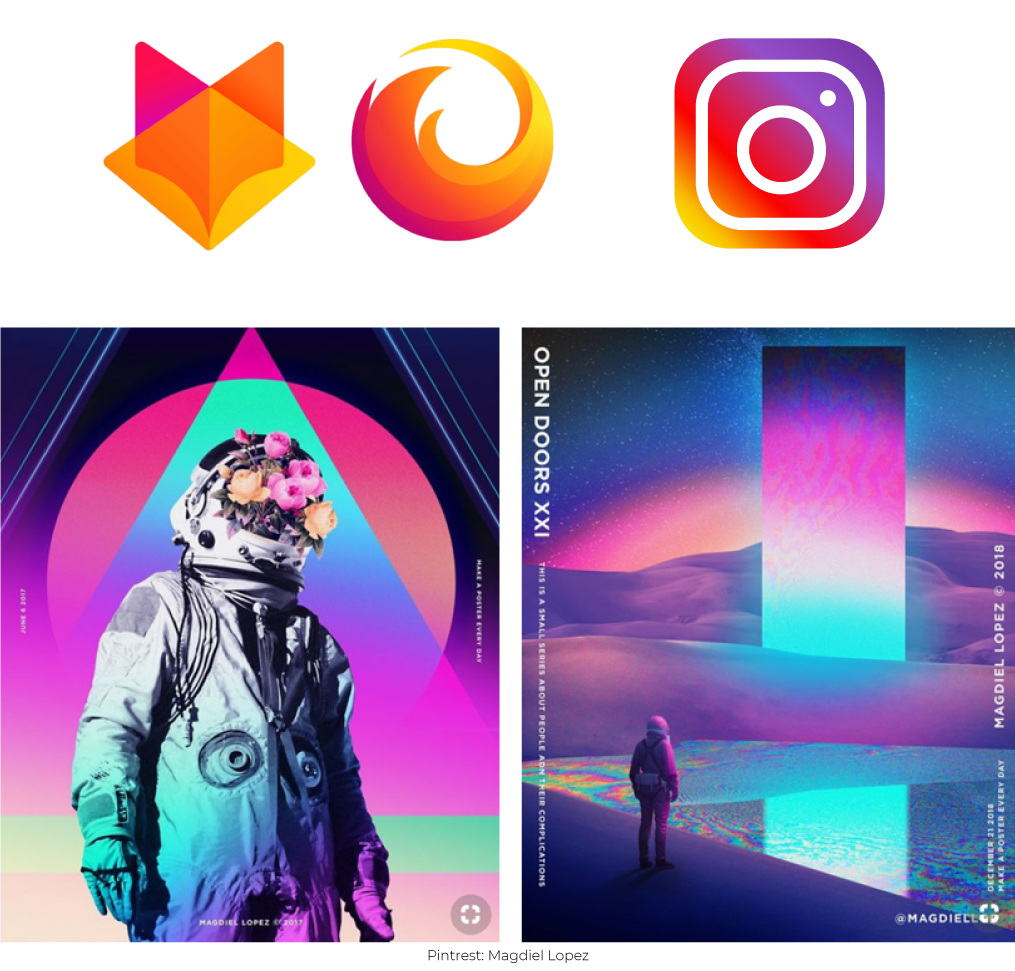 Градиентите ни се добро познати во изминативе неколку години, а од неодамна почнавме да ги гледаме сè повеќе и во лого дизајнот. Исто така и враќањето на дуотонот во изминативе година, две, придонесуваат двата тренда да се комбинираат, со што 2019-та година сигурно ќе ја обележат градиенти на дуотонови.