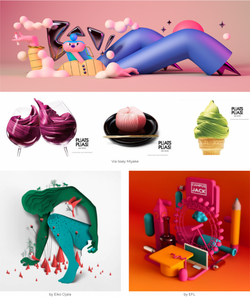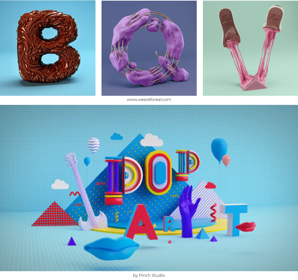 Исто така и 3Д типографијата ќе игра голема улога во делот на графичкиот дизајн, а најдобриот дел е дека нема посебен тип на фонт кој најдобро функционира за овој тренд, секој фонт може да биде прикажан во 3Д.